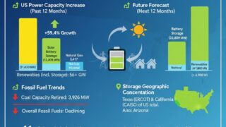 米国エネルギー情報局(EIA)の最新データによると、米国の電力容量増加において蓄電池(バッテリーエネルギー貯蔵)と太陽光発電が圧倒的な割合を占めており、化石燃料の容量は引き続き減少傾向にあります。このデータは、米国のエネルギー転換が加速して...