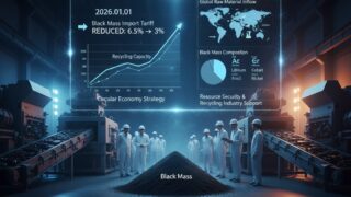 中国政府は2026年1月1日付で、リチウムイオン電池のスクラップから成る「ブラックマス(Black Mass)」の輸入関税を従来の 6.5% から 3% へと大幅に引き下げました。1. 政策の主な目的リサイクル産業の支援: 過剰設備を抱え、...