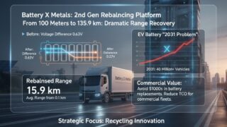 Battery X Metals Inc. は、独自の「第2世代リチウムイオンバッテリー再バランス調整プラットフォーム」により、使用不能だった電気自動車(EV)の航続距離を劇的に回復させることに成功したと発表しました。1. 実証試験の主要な...