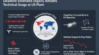 オーストラリアのグラファイト(黒鉛)生産大手シラー・リソーシズ(Syrah Resources)は、米電気自動車(EV)大手テスラ(Tesla)との供給契約における「契約違反(不履行)」の解決期限を、2026年3月16日まで3度目の延長をす...
