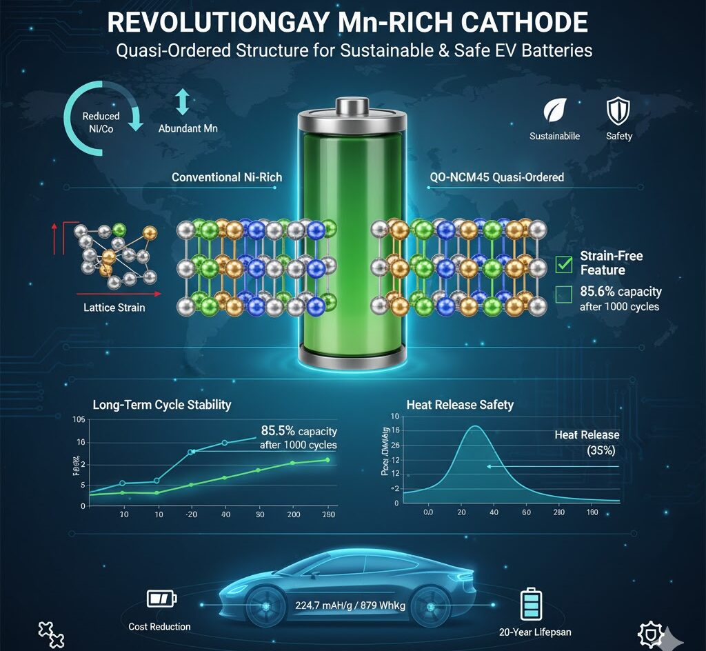 QO-NCM45カソードは、マンガンリッチ化と準秩序結晶構造という二つの主要な革新により、持続可能性と高性能を両立させた新しいタイプの層状カソードです。