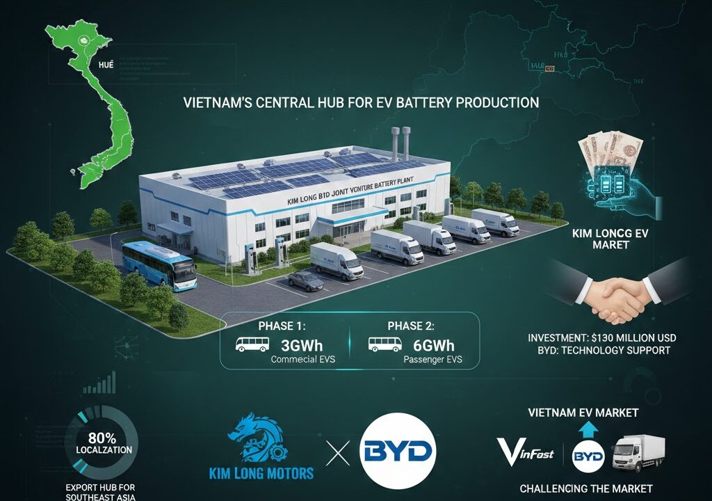 Vietnam’s Kim Long Motor has announced a partnership with China’s leading EV manufacturer, BYD, to construct a production plant for commercial electric vehicle batteries in central Vietnam.