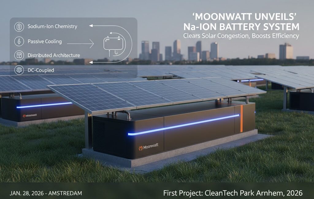 [Amsterdam, January 28, 2026] – As solar power adoption surges globally, grid capacity shortages and “price cannibalization” have become urgent challenges. To address these issues, Moonwatt has introduced a new Sodium-Ion Battery Energy Storage System (BESS) specifically engineered for hybrid solar plants. This technology, which recently secured a 1.15 million Euro DEI+ grant from the Netherlands Enterprise Agency (RVO), is scheduled for its first project deployment at Cleantech Park Arnhem in 2026.