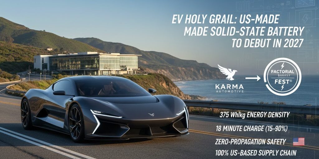 The “Holy Grail” of electric vehicle (EV) technology—the solid-state battery—is finally hitting American roads. California-based ultra-luxury automaker Karma Automotive and Massachusetts-based battery pioneer Factorial Energy announced on February 5, 2026, the launch of the first-ever solid-state battery production program for passenger vehicles in the United States.