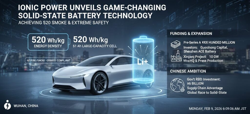 - 競合他社の動き: トヨタ自動車が2027年から2028年の実用化を目指すなか、中国勢(CATL、BYD、WeLionなど)は「半固体電池」での先行逃げ切りと、Ionic Powerのような新興勢による「全固体」へのショートカットの両面作戦を展開しています。