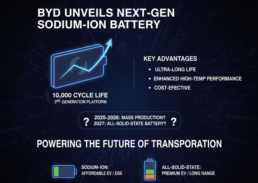 BYD Announces Third-Generation Sodium-Ion Battery with 10,000-Cycle Life