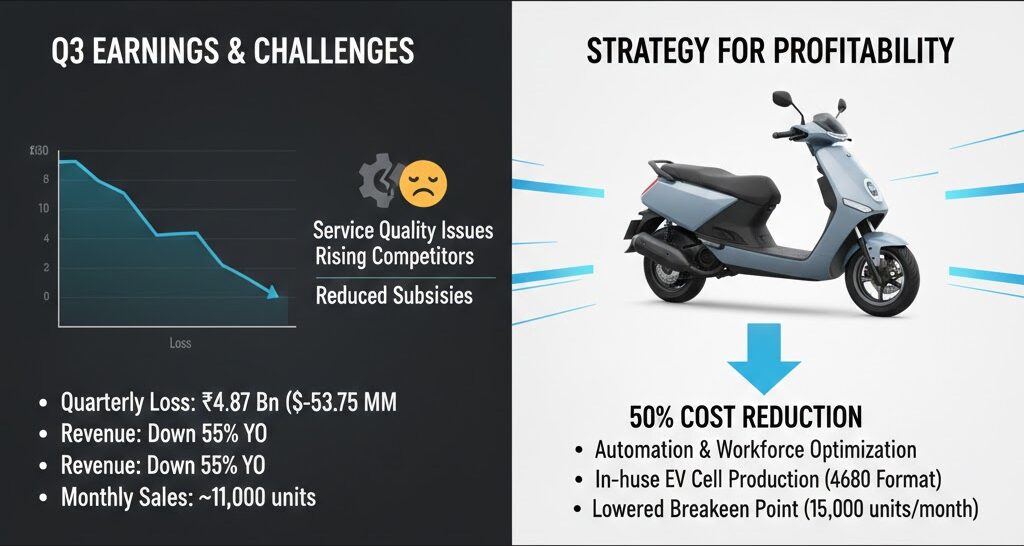 - Rising Competition: Established Indian motorcycle giants like TVS Motor and Bajaj Auto are accelerating their EV shifts, eroding Ola’s market share.