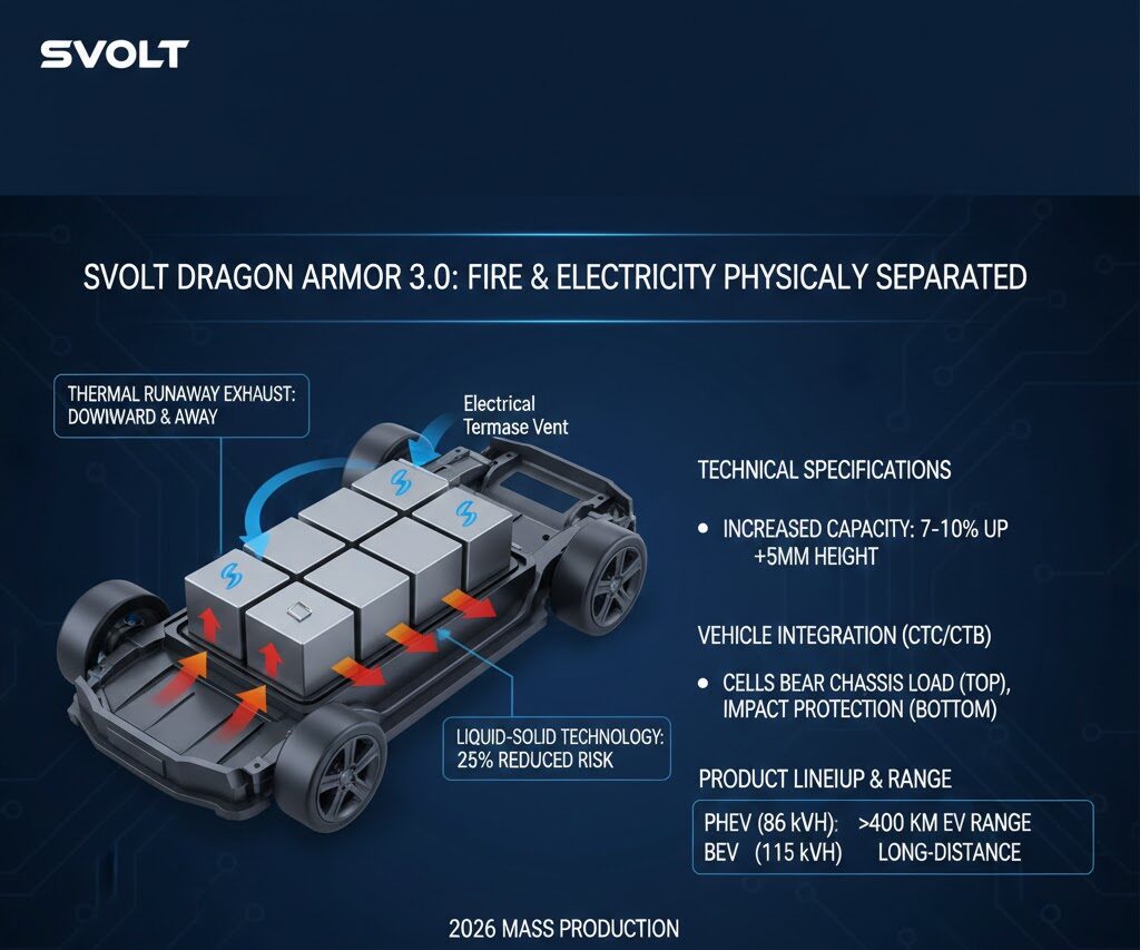 Svoltは、新型バッテリー「Dragon Armor 3.0」において、業界で初めて火と電気の物理的分離を実現したと主張しています。