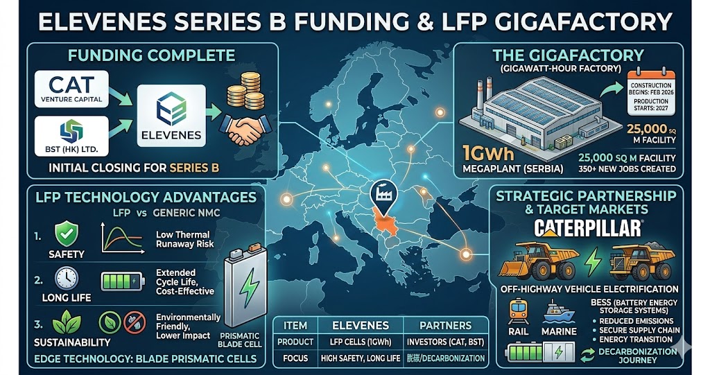 European battery manufacturer ElevenEs has completed the first closing of its Series B investment round, securing funds from Caterpillar Venture Capital Inc. (a subsidiary of the US construction equipment giant Caterpillar Inc.) and an affiliate of BST (HK) Ltd., a leading commodities trading firm based in Hong Kong.