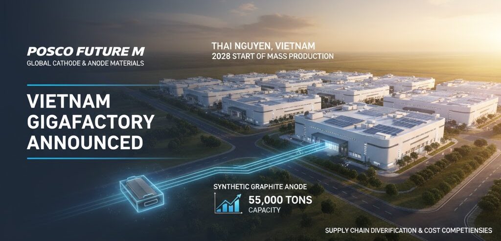 On March 5, 2026, South Korean battery materials giant POSCO Future M officially announced plans to construct a new synthetic graphite anode material plant in Thai Nguyen, northern Vietnam. This project represents a key strategic investment aimed at responding to the rapidly growing global demand for battery materials and diversifying the supply chain.