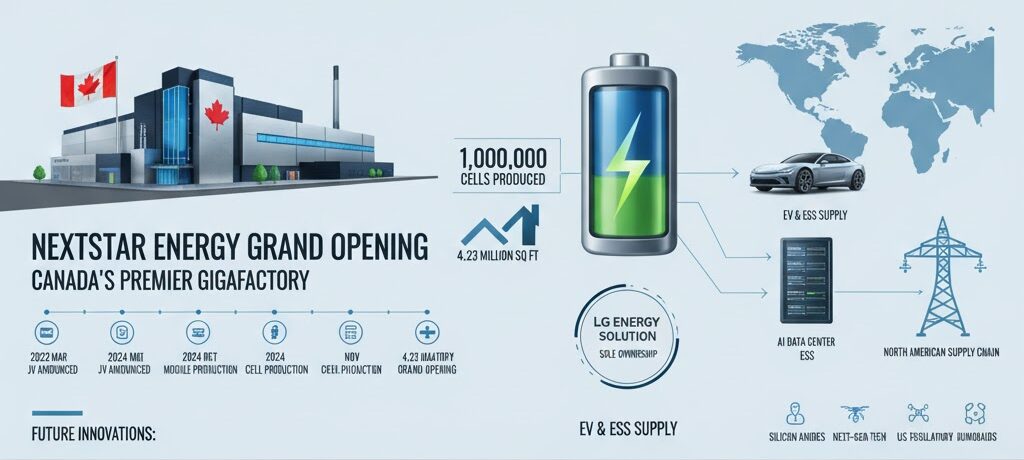 The grand opening of NextStar Energy, Canada’s first and only commercial-scale battery manufacturing facility, was celebrated in Windsor, Ontario. This facility stands as one of the most critical hubs in the North American clean energy supply chain.