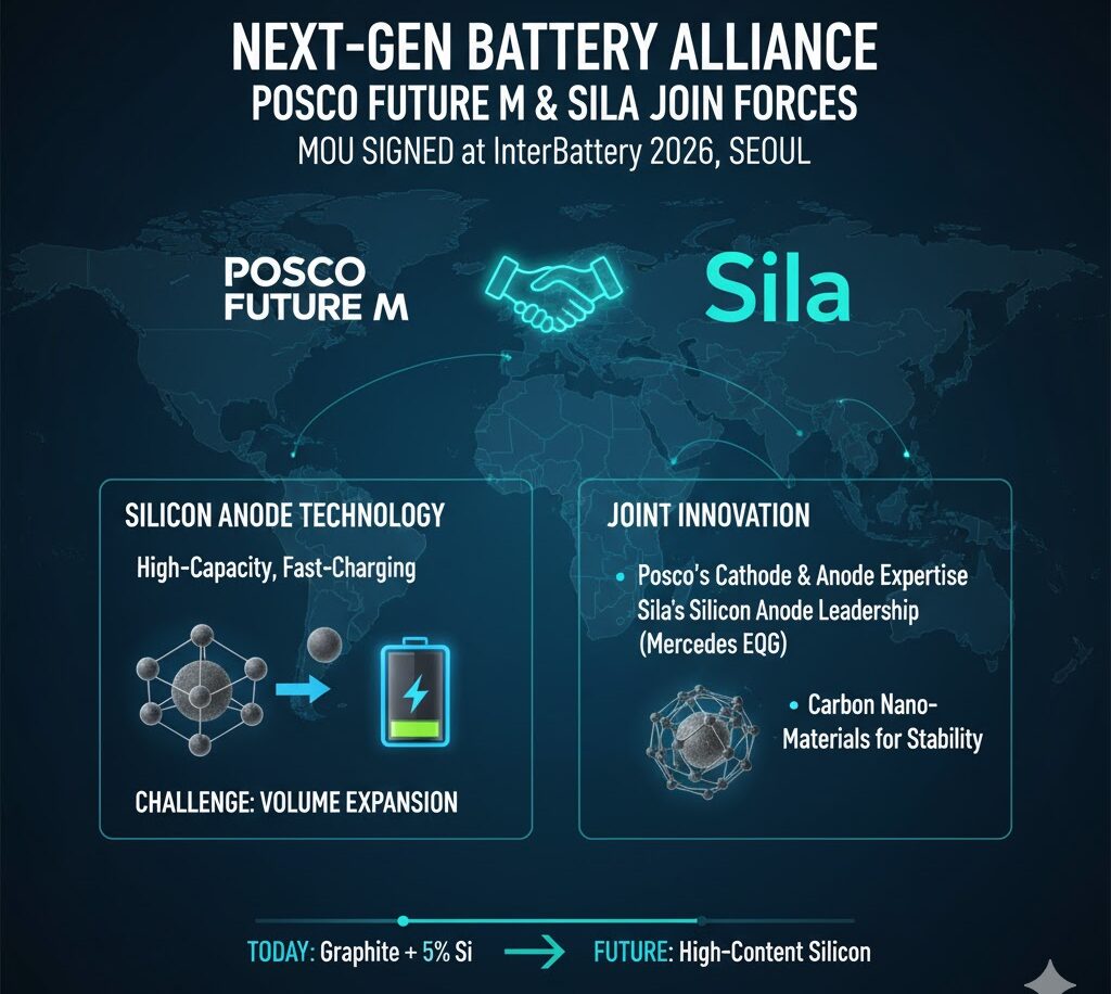 - Partnership Scope: Integrating POSCO Future M’s expertise in cathode, anode, and carbon materials with Sila’s silicon anode technology.