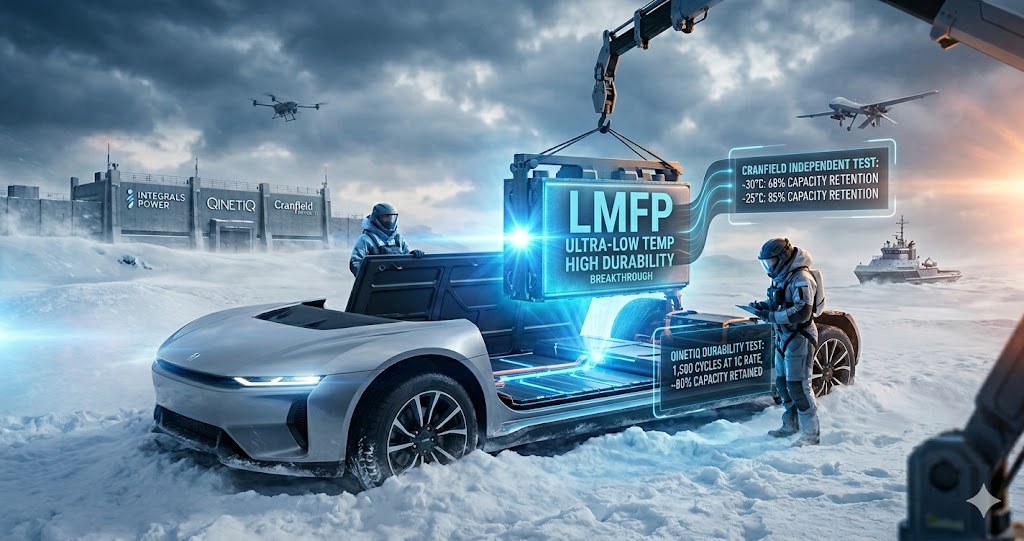 UK-based battery material startup Integrals Power has announced that its next-generation high-manganese Lithium Manganese Iron Phosphate (LMFP) cathode active material has demonstrated exceptional durability and low-temperature performance in rigorous independent testing.