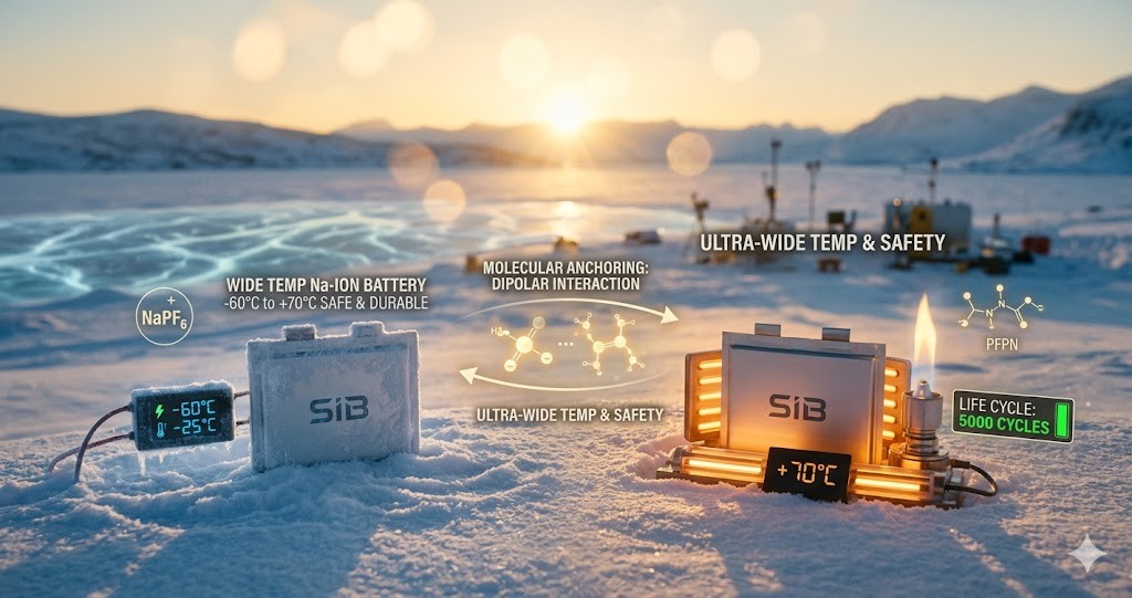 This research represents a major step toward the commercialization of sodium-ion batteries by controlling molecular-level interactions within the electrolyte. If this technology becomes widespread, it could lead to safe, low-cost energy storage systems that operate reliably in regions with extreme climatic conditions.