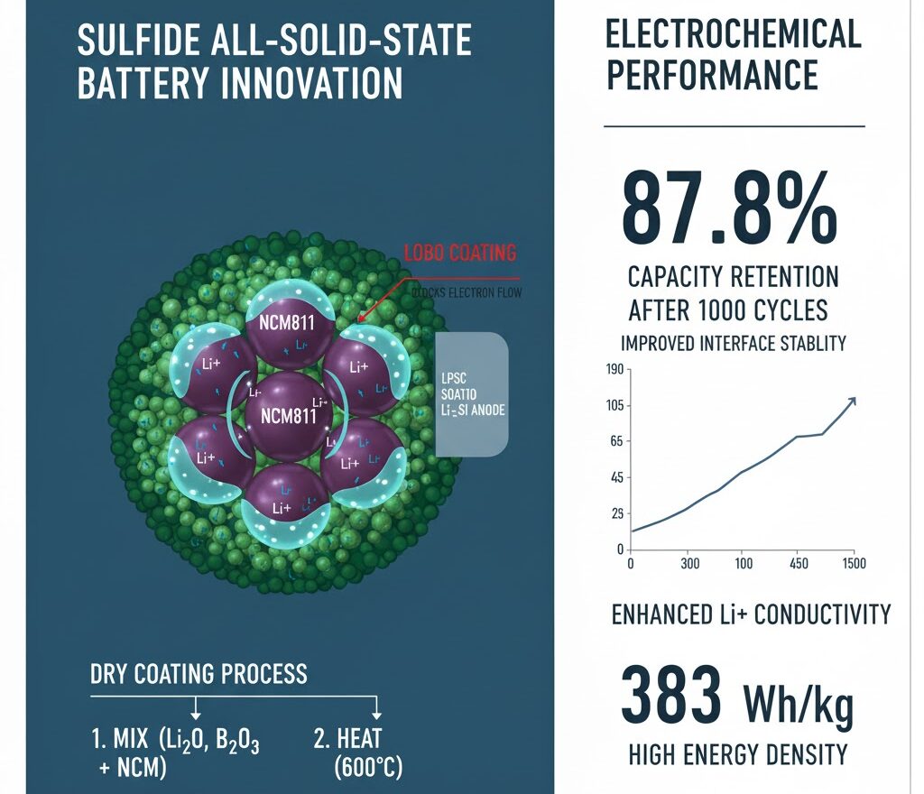 本研究は、硫化物系全固体リチウム電池(ASSLB)の高エネルギー密度化と高安全性化に向けた、ニッケルリッチ正極活物質(CAM) の界面安定性向上に関するものです。