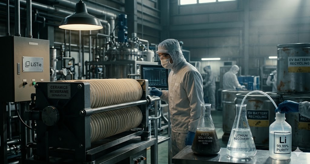 The technology developed by LiSTie utilizes a ceramic membrane (an ionic conductor) that selectively allows only lithium ions to pass through.