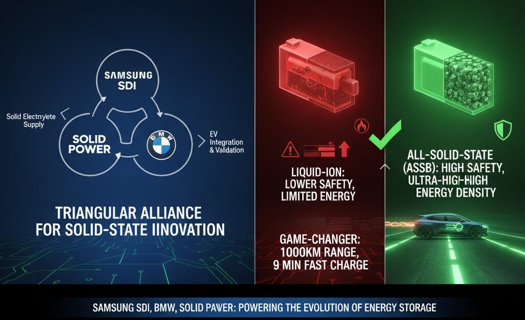 韓国のバッテリー大手サムスンSDIは、ドイツのプレミアム自動車メーカーBMW、そして米国のバッテリー素材企業**ソリッドパワー(Solid Power)**との間で、次世代の「全固体電池(All-Solid-State Battery: ASSB)」の開発・実証に向けた3者業務協約を締結しました。