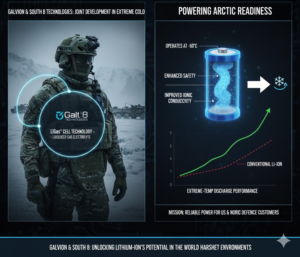 インテリジェントな電力・データ管理ソリューションの世界的リーダーである**ガルビオン(Galvion)と、革新的なリチウムイオン電池技術「LiGas®」を開発するサウス8テクノロジーズ(South 8 Technologies)**は、極寒環境向け高性能バッテリーの共同開発に関する基本合意書(LOI)を締結したと発表しました。