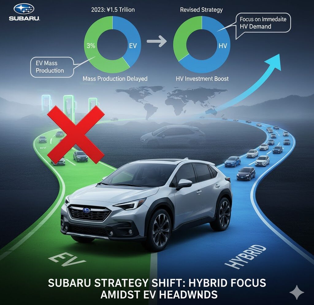 スバルは、当初掲げていた積極的な電気自動車(EV)へのシフト戦略を見直し、ハイブリッド車(HV)へのリソース配分を強化する戦略転換を発表しました。これは、主要市場である米国での市場環境の変化と、HV需要の増加に対応するための措置です。