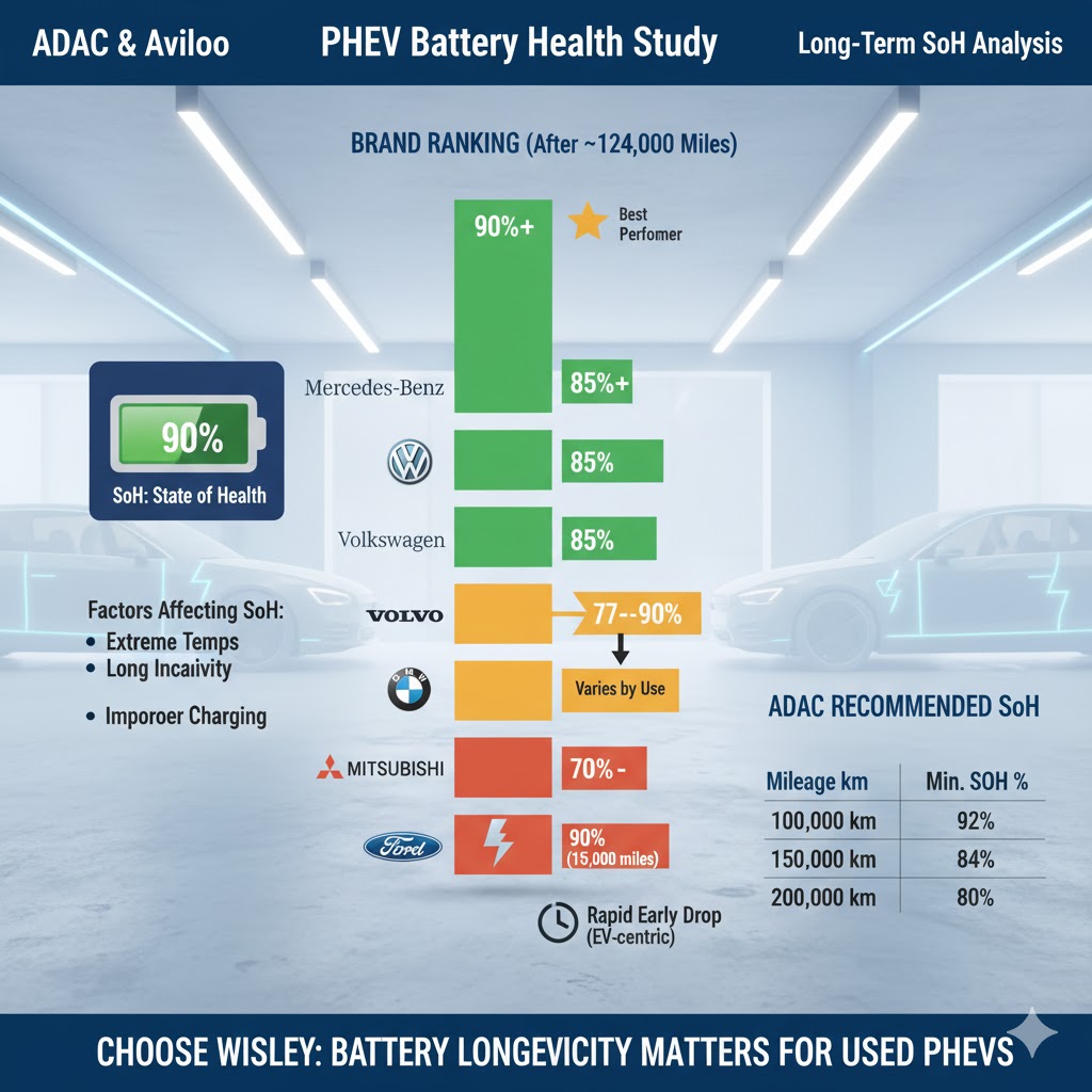 - メルセデス・ベンツのPHEVは、**124,000マイル(約20万km)走行後も元の充電容量の約90%**を維持し、調査対象の中で最も優れた長期耐久性を示しました。