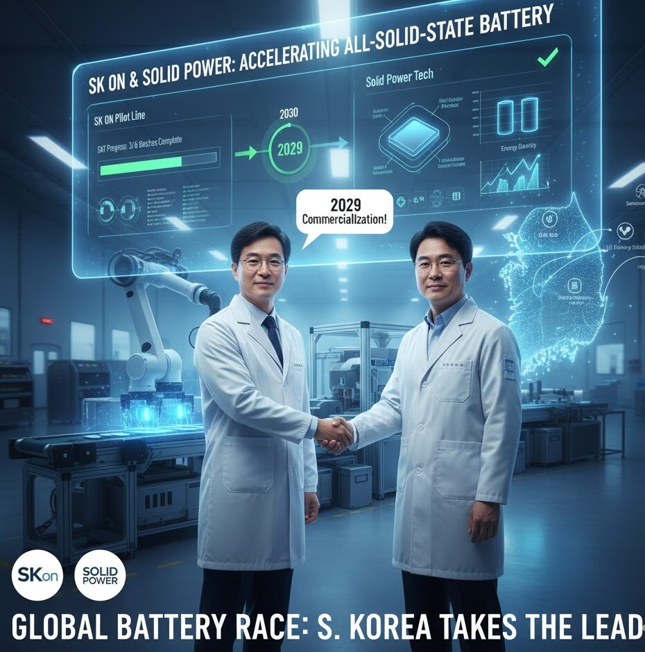 SKオンは、主要パートナーであるソリッドパワー (Solid Power) との協力体制が功を奏し、次世代全固体電気自動車(EV)バッテリーの商用化計画を大幅に加速しています。ソリッドパワーによる迅速な機器テストの完了見込みにより、SKオンは大田(テジョン)のパイロットラインを年内に稼働させ、量産開始時期を2030年から2029年に前倒しする見込みです。