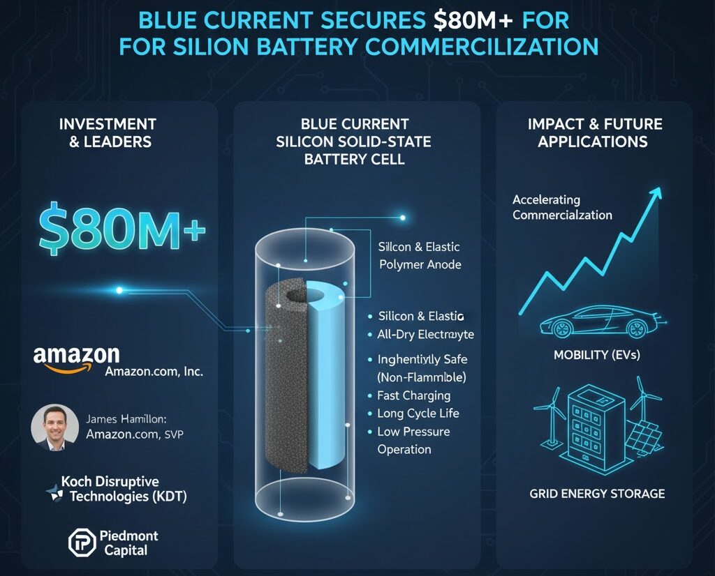 安全で高性能なシリコン固体電池のリーディングカンパニーであるブルーカレント社は、シリーズDの増資ラウンドで8,000万ドル(約117億円)超の資金調達を完了しました。