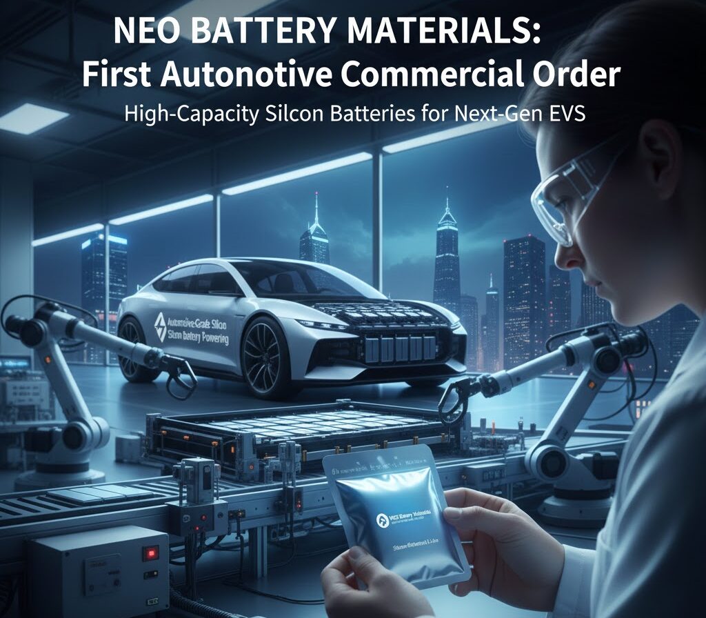 カナダの電池技術企業NEO Battery Materials Ltd.(NEO)は、ドローン、ロボット、EV向けに高容量・急速充電が可能なシリコン強化バッテリーを開発しており、この度、フォーチュン・グローバル500に名を連ねるアジアの自動車OEM(相手先ブランド供給)から、初の商業購入注文を受注したと発表しました。
