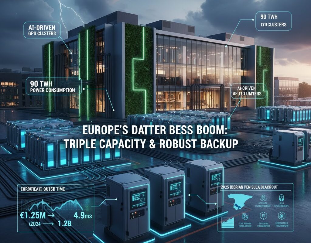 ヨーロッパは、AI、クラウドコンピューティング、デジタルトランスフォーメーションの急速な需要増大に対応するため、今後5〜7年でデータセンター容量を3倍に増強する計画です。このインフラブームに伴い、無停電電力供給を保証するための**堅牢なバッテリーバックアップシステム(BESS)**への需要が前例のないレベルで高まっています。