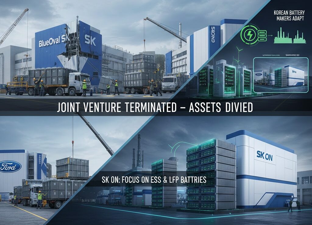 韓国のバッテリーメーカーである SKオン と米国の自動車大手 フォード・モーター は、米国における共同バッテリー生産のための合弁事業 BlueOval SK を終了し、資産を分割することで合意しました。