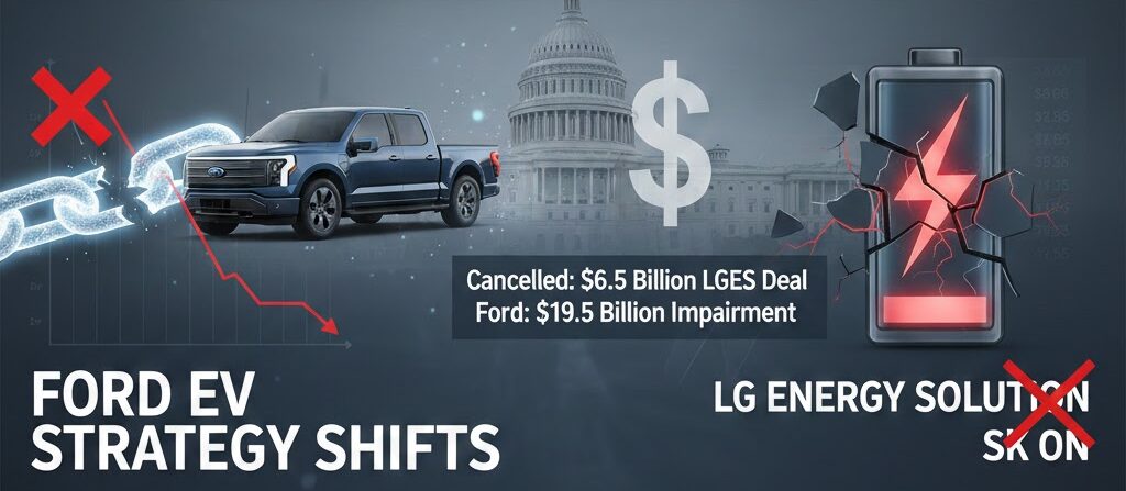 フォード・モーターは、韓国のバッテリー大手**LG Energy Solution(LGES)**と締結していた約65億ドル(約9兆6000億ウォン)相当の供給契約をキャンセルしました。これは、急速に冷え込むEV需要と、米国の政権交代に伴う政策転換を背景とした劇的な決定です。