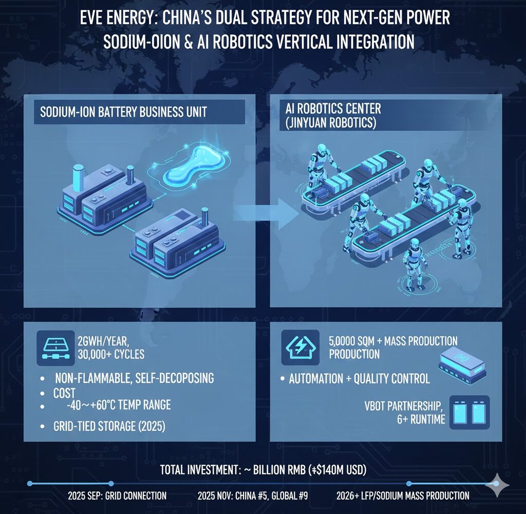 中国バッテリー大手のイブ・エナジー(Eve Energy)は、広東省恵州市の本社地区において、ナトリウムイオン電池事業本部およびAIロボットセンターの起工式を行いました。リチウム依存からの脱却と、製造プロセスのAI化を同時に進める戦略的なプロジェクトです。