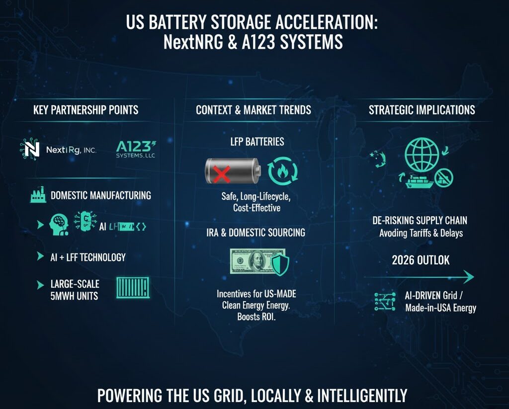 - AIと製造技術の融合: NextNRGのAIシステム統合能力と、A123のLFP(リン酸鉄リチウム)化学技術を組み合わせます。