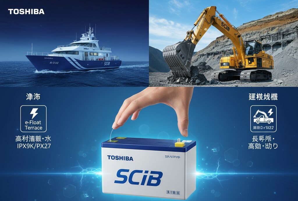 東芝は2025年10月16日、独自のリチウムイオン電池(LiB)「SCiB」の新製品「SCiB 24V車載・産業用パック」を開発し、受注を開始したと発表しました。この新製品は、船舶や建設機械などの大型産業機器における、従来の鉛蓄電池からの置き換え需要を狙ったものです。
