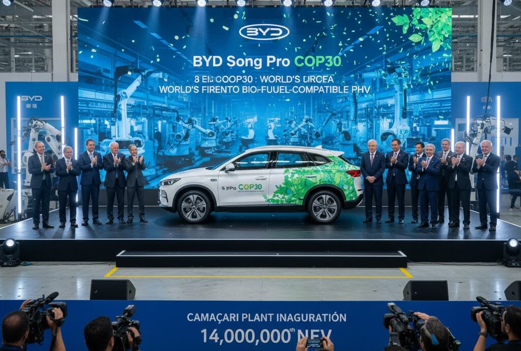 BYDはブラジルで、世界初のバイオ燃料(エタノール混合比不問)対応PHV「宋Pro COP30」を発表しました。このPHVはブラジル専用に開発され、同国最大のEV生産拠点となるカマサリ工場の開設式で公開されました。この車両はBYDの1400万台目のNEVでもあり、COP30気候サミットへの貢献を示す名称が付けられています。この発表は、BYDのアジア以外での最大規模の生産体制と、ブラジルにおける新エネルギー車市場への強いコミットメントを示すものです。