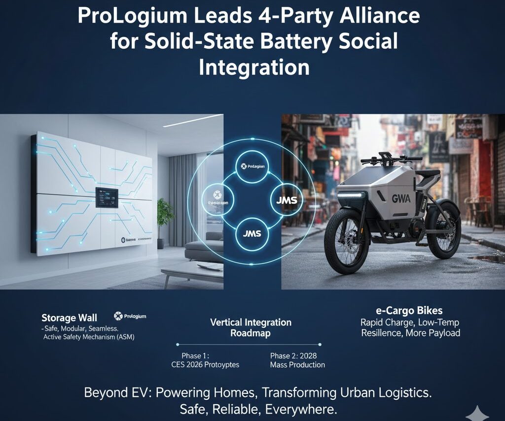 2026年1月6日、次世代電池のリーダーであるProLogium(プロロジウム)は、CES 2026において、蓄電システムおよびマイクロモビリティ分野への全固体電池導入に向けた4社戦略的提携を発表しました。