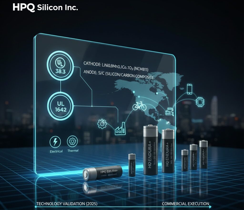 カナダのテクノロジー企業であるHPQ Silicon Inc.(以下、HPQ)は2026年1月8日、同社の次世代リチウムイオン電池「HPQ ENDURA+」シリーズが、米国市場での販売に不可欠な安全規格であるUL 1642認証を取得したと発表しました。