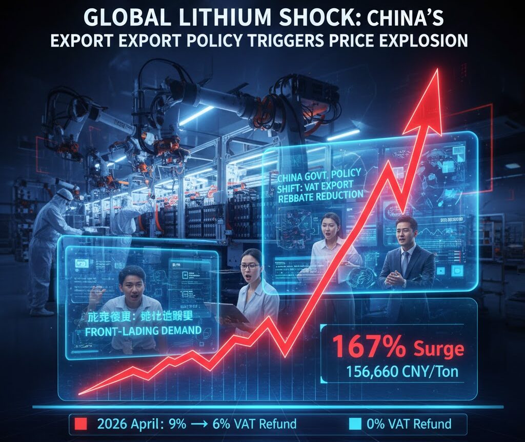 中国政府が電池製品に対する輸出付加価値税(VAT)の還付率を引き下げ、将来的に撤回すると発表したことを受け、リチウム価格が急騰。2023年11月以来の高値を記録しました。