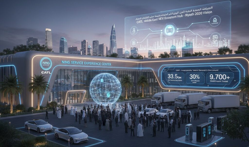 2026年1月10日、CATLはサウジアラビアのリヤドに、中国国外では最大規模となる「NING SERVICEエクスペリエンスセンター」をオープンしました。7,000平方メートルを超えるこの施設は、単なる修理工場ではなく、中東全域の「新エネルギー・エコシステム」のハブとして機能します。