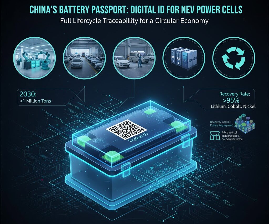 中国政府は、電気自動車(EV)用バッテリーのライフサイクル全体を可視化し、安全かつ効率的なリサイクル体制を構築するため、すべての新エネルギー車(NEV)用動力電池に固有の「デジタルID」を割り当てる方針を固めました。これは、2026年4月1日に施行される「新エネルギー車用動力電池のリサイクルと総合利用に関する暫定措置」の一環として導入されます。